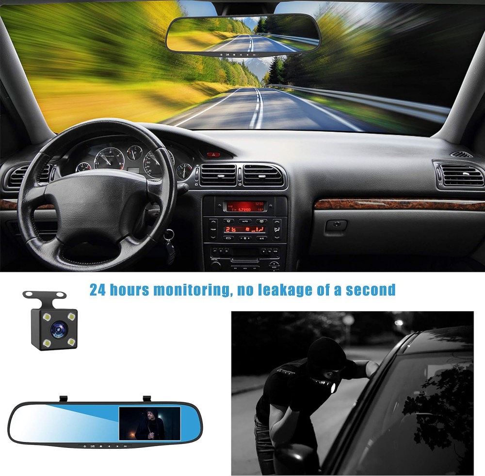 لن يمنعك تصميم شاشة العرض الذي يغطي نصف المرآة من الرؤية الخلفية أثناء القيادة، كما يضمن لك التسجيل عالي الدقة 1080 بكسل (480 بكسل للكاميرا الخلفية) الحصول على أفضل لقطات طوال أوقات النهار والليل.