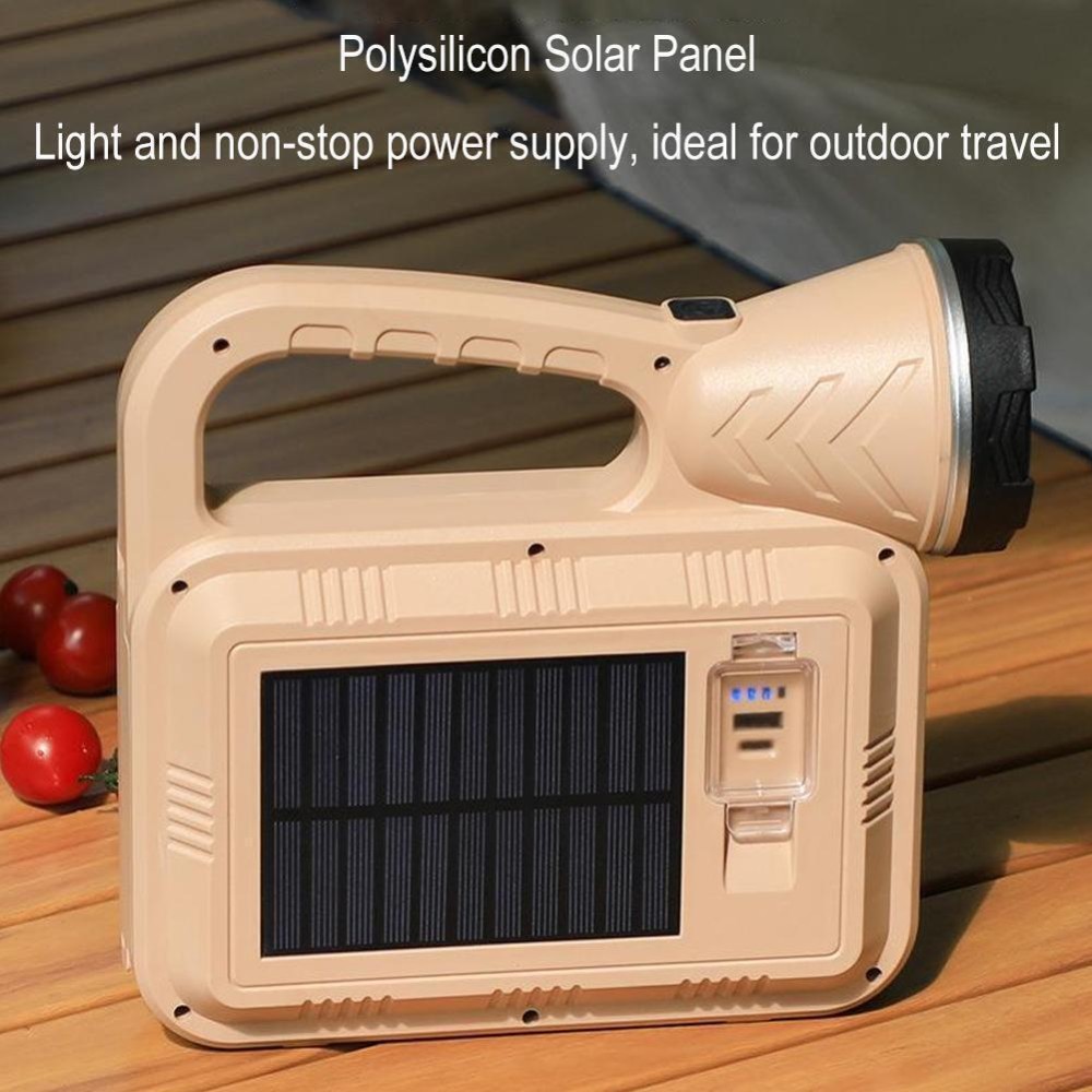 كشاف رحلات بثلاث جهات إضاءة قابل لاعادة الشحن بالطاقة الشمسية وبمنفذ USB مزود بباور بانك